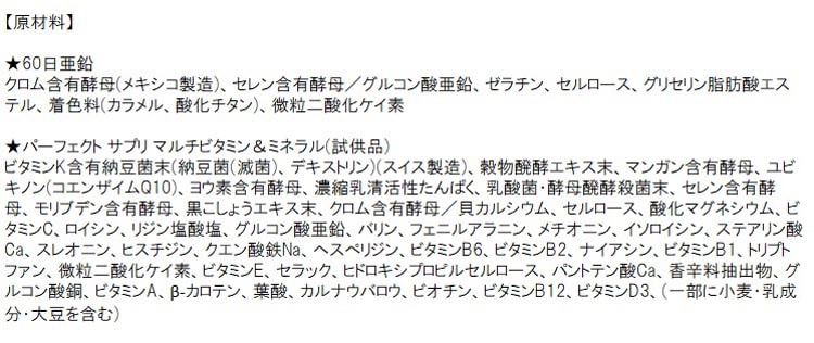 【亜鉛 60日分 + パーフェクトサプリ マルチビタミン&ミネラル 3日分付の商品詳細】