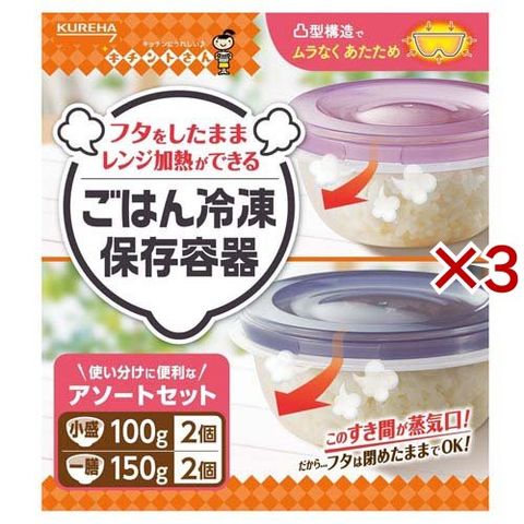 キチントさん ごはん冷凍保存容器 一膳+小盛 アソートセット (3セット)