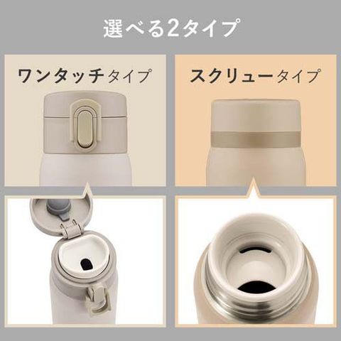 | ・商品サイズ(cm):直径約6.6×高さ約16.8 ・質量:約198g ・実容量:約350mL ・保温効力(※1):65度以上:6時間 ・保冷効力(※2):9度以下:6時間 ・材料の種類:本体:ステンレス鋼(外側:アクリル樹脂塗装)、ふた、飲み口:ポリプロピレン、パッキン:シリコーン ※1:(保温効力)室温20±2度において、製品のせん下端まで熱湯を満たし、縦置きにした状態で、湯温が95±1度のときから6時間放置した場合におけるその湯の温度のことです。 ※2:(保冷効力)室温20±2度において、製品のせん下端まで冷水を満たし、縦置きにした状態で、水温が4±1度のときから6時間放置した場合におけるその水の温度のことです。 |