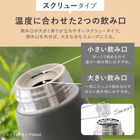●香り際立つ「スクリュータイプ」:飲み口が大きく香りが立ちやすい点もポイント。お茶のおいしい香りまでしっかり味わえます。
