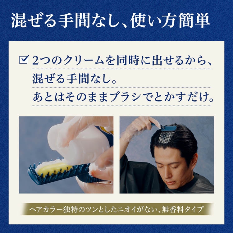 ●頭髪ダメージに配慮しながら、染まりの良さとムラの無い自然な仕上がり。