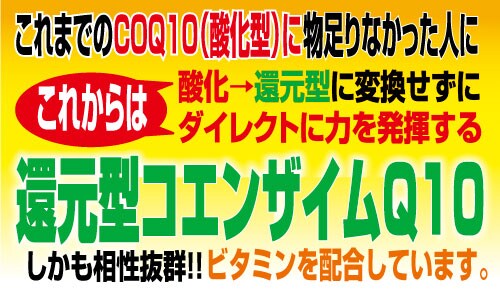 ●直接体内で働く還元型コエンザイムQ10を1日目安量2粒中に100mg配合し、更に国が定める規格基準内でビタミンEを8mg配合しています。