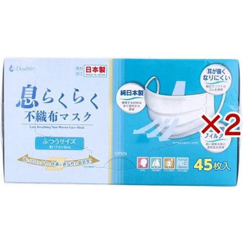 デュウエアー 息らくらく不織布マスク ふつうサイズ (45枚入×2セット)