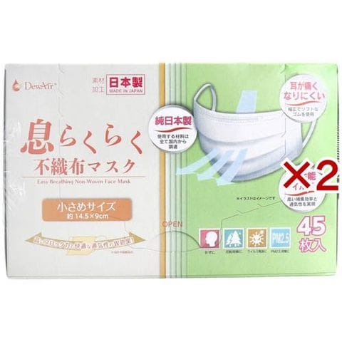 デュウエアー 息らくらく不織布マスク 小さめサイズ (45枚入×2セット)