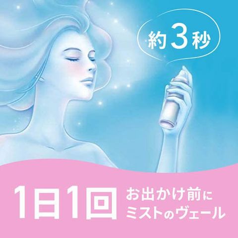 (1)目と口を閉じ、20cm程度離した所から適量(約3秒)を顔や髪全体にスプレーしてください。