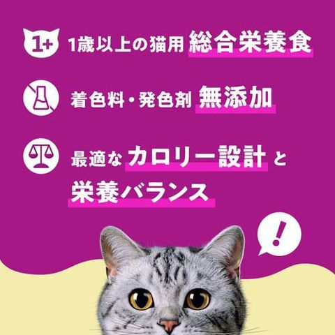 ●1歳以上の猫に必要な栄養素がバランスよく含まれた総合栄養食のキャットフードです。