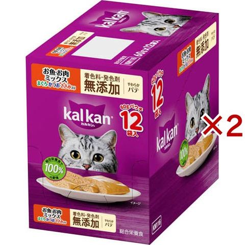 カルカン パウチ やわらかパテ お魚 まぐろかつおささみ 着色料 無添加 成猫 ウェット (12袋入×2セット(1袋60g))