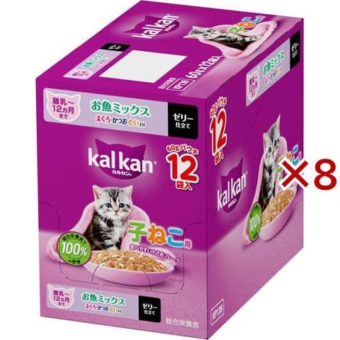 カルカン パウチ 12ヵ月まで子ねこ お魚ミックス まぐろかつおたい キャットフード (12袋入×8セット(1袋60g))