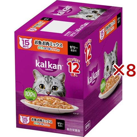 カルカン パウチ 15歳 お魚・お肉ミックス まぐろかつおささみ キャットフード (12袋入×8セット(1袋60g))
