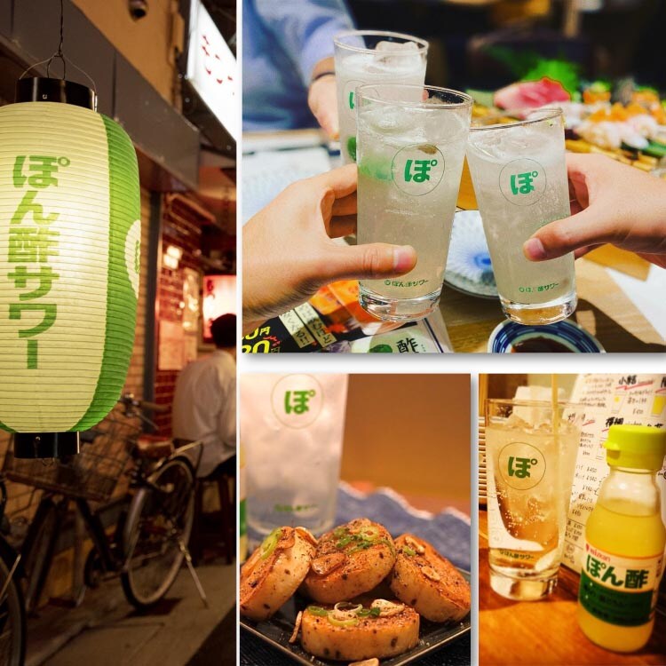 ●また、お酒の割り材としてもお使いいただくと、ぽん酢サワー(ポン酢サワー)がお召し上がりいただけます。ご使用前に1.8Lに対し、ゆず(1個)をすりおろすか、又はだいだい・すだちなどのしぼり汁(2-3個)を加えますといっそうさわやかな風味が引き立ちます。
