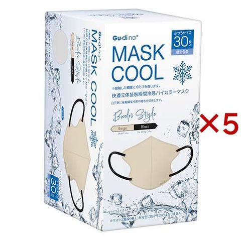 グディナ 快適立体接触瞬間冷感バイカラーマスク ベージュ (30枚×5セット)