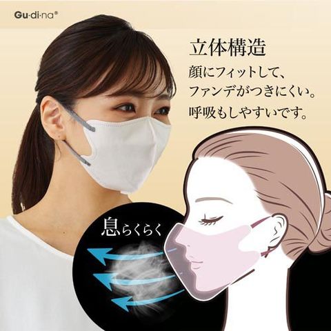 ●立体プリーツ加工を施しており、顔にフィットして、通気性の確保にも優れ、口紅も付きにくく女性にも適したマスクです。