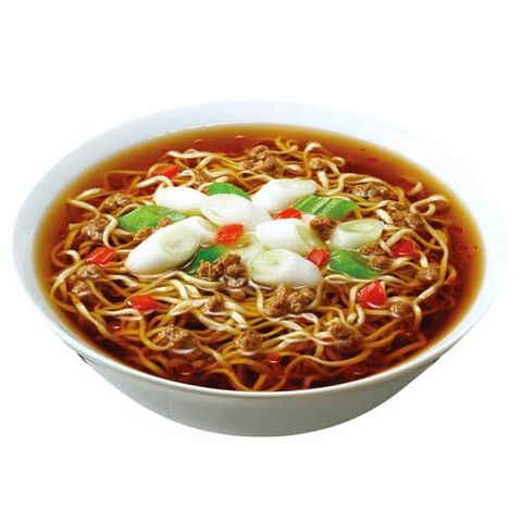 | 油揚げめん(小麦粉(国内製造)、植物油脂、ラード、しょうゆ、食塩、たん白加水分解物、チキンエキス、ポークエキス、野菜エキス)、スープ(しょうゆ、食塩、植物油脂、糖類、ラー油、ガラスープ、たん白加水分解物)、かやく(味付肉そぼろ、ねぎ、赤ピーマン)/加工でん粉、調味料(アミノ酸等)、カラメル色素、酒精、増粘多糖類、かんすい、酸化防止剤(ビタミンE、ローズマリー抽出物)、カロチノイド色素、香料、(一部に小麦・卵・ごま・大豆・鶏肉・豚肉を含む) |