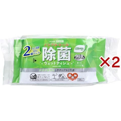 清潔習慣 ノンアルコール 除菌ウェットティシュ (2個パック×2セット(1個22枚入))