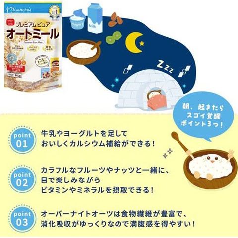 ・すでに加熱加工しているので、そのままお召し上がりいただけますが、お粥状に調理するとオートミールが柔らかくなり、消化しやすくなります。