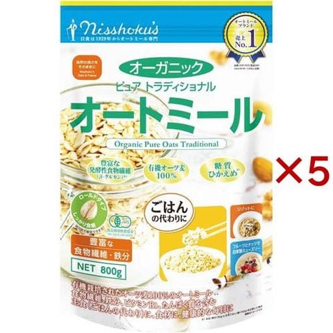 日食 オーガニック ピュア トラディショナル オートミール ロールドタイプ (800g×5セット)