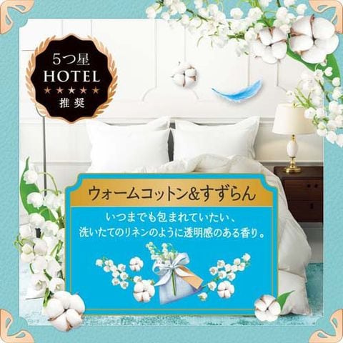 ●ウォームコットン&すずらんの香り:いつまでも包まれていたい、洗いたてのリネンのように透明感ある香り。