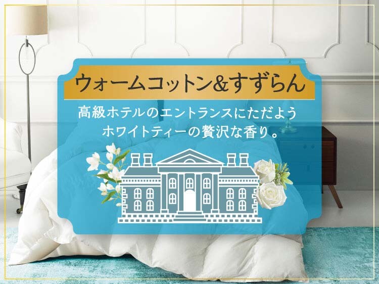 ●ウォームコットン&すずらんの香り:いつまでも包まれていたい、洗いたてのリネンのように透明感ある香り。