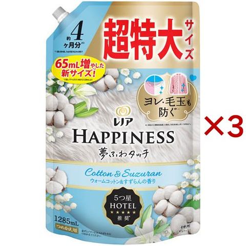 レノア ハピネス 夢ふわタッチ 柔軟剤 ウォームコットン&すずらん 詰め替え 超特大 (1285ml×3セット)