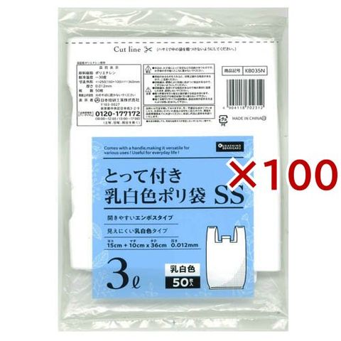 暮らしのべんり学 取っ手付きポリ袋 乳白 3L KB035N (50枚入×100セット)