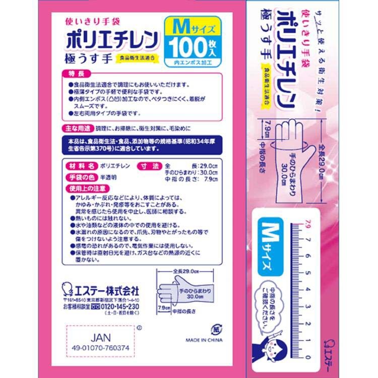 使いきり手袋 ポリエチレン 極うす手 料理 掃除用 Mサイズ 半透明 (100枚入×3セット)