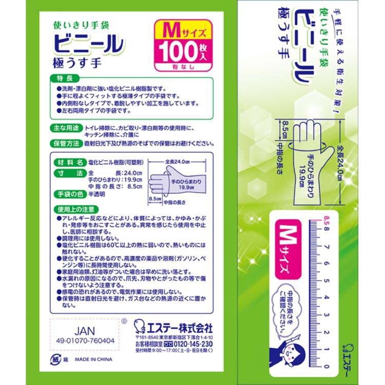 【使いきり手袋 ビニール 極うす手 掃除 洗濯 食器洗い用 Mサイズ 半透明の商品詳細】