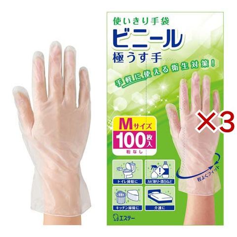 使いきり手袋 ビニール 極うす手 掃除 洗濯 食器洗い用 Mサイズ 半透明 (100枚入×3セット)