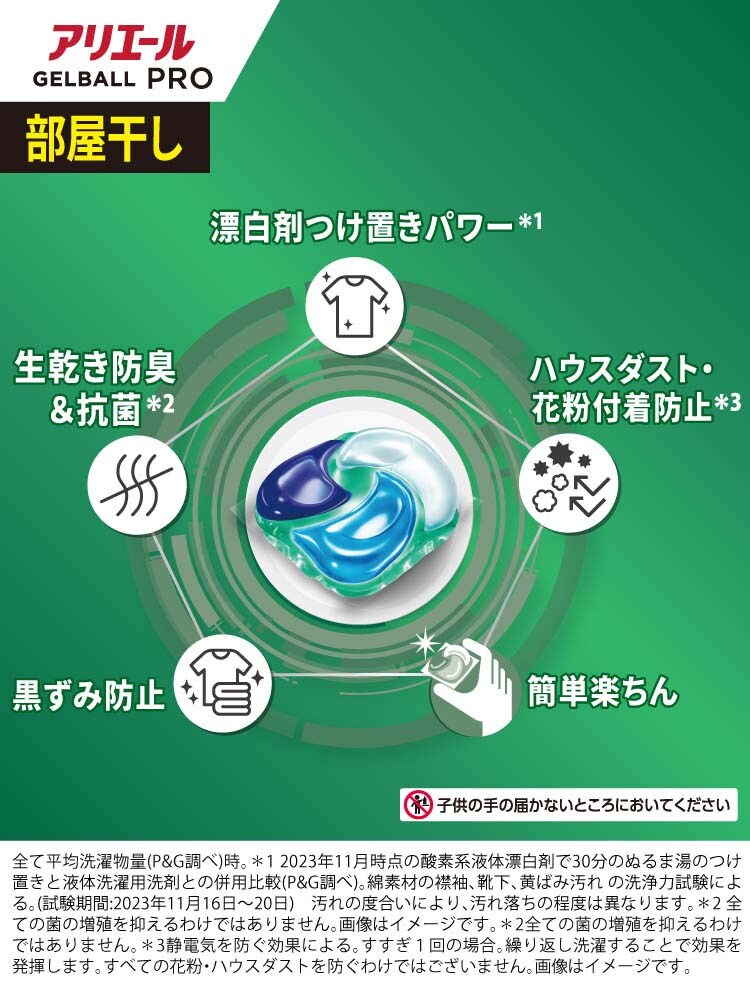 【アリエール 洗濯洗剤 ジェルボール プロ 部屋干し&スポーツ 詰め替えの商品詳細】