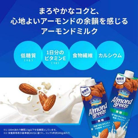 ●カリフォルニア契約農園アーモンド使用のアーモンドミルク(※牛乳ではありません)。