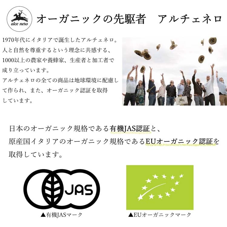 ●アルチェネロの有機パスタは、オーガニック農法で大切に育てられた生産者メンバーの小麦を、美しい山々に囲まれたきれいな水と空気のもと、最適な製法でパスタへと加工しています。そのため、品質の良さ、伝統農法を貫く真摯さに加え小麦の持つおいしさや栄養価が楽しめます。