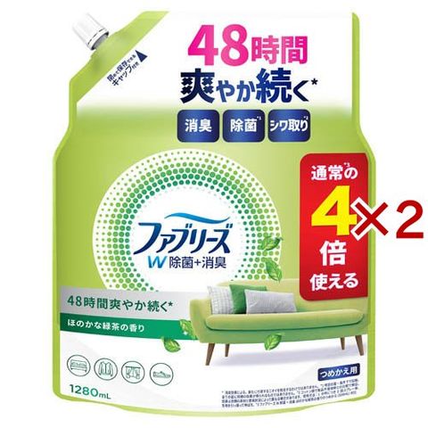 ファブリーズ W除菌+消臭スプレー 衣類・布製品用 ほのかな緑茶 詰め替え 4回分 (1280ml×2セット)
