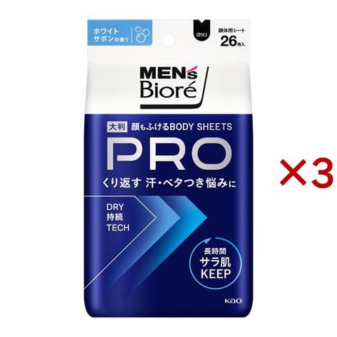 メンズビオレ 顔もふけるボディシートPRO ホワイトサボンの香り (26枚入×3セット)