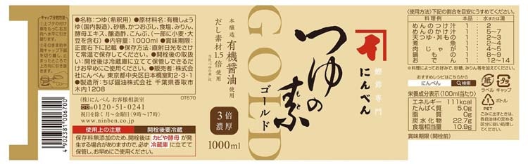 | 有機しょうゆ(国内製造)、砂糖、かつおぶし、食塩、みりん、酵母エキス、醸造酢、こんぶ、(一部に小麦・大豆を含む) |