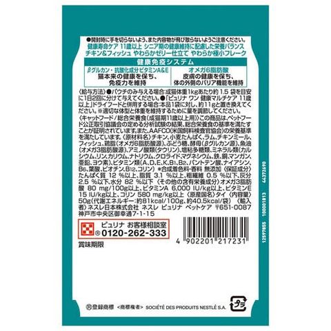 「ピュリナ ワン 健康マルチケア11歳以上」ドライフードと併用する場合:本品1袋に対し、約11gと置き換えてください。※適切な体型と体重を維持するために量を調節してください。