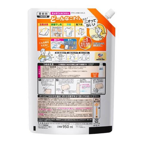 ハミング消臭実感 オレンジ&フラワーの香り つめかえ用 (950ml×3セット)