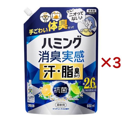 ハミング消臭実感 汗・脂臭タイプ クリアシトラス (930ml×3セット)
