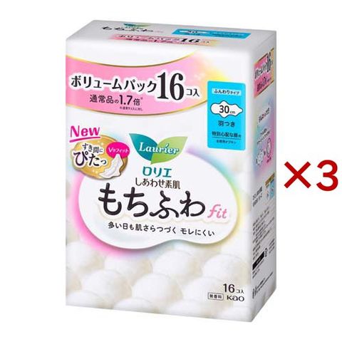 ロリエ しあわせ素肌 もちふわfit ボリュームパック 特別心配な昼用 30cm 羽つき (16個入×3セット)