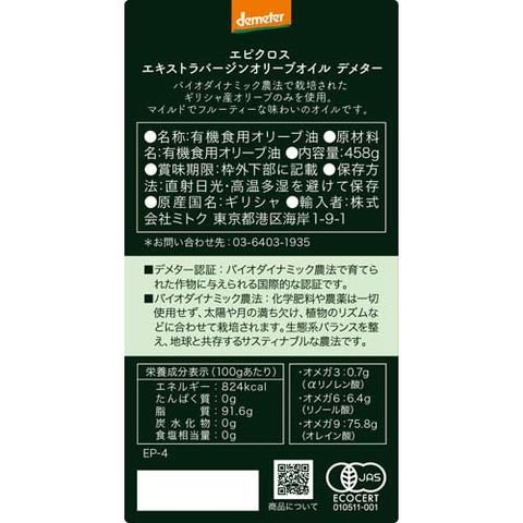 エピクロス エキストラバージンオリーブオイル デメター (458g×2セット)