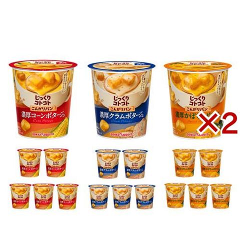 | ・じっくりコトコトこんがりパン濃厚コーンポタージュカップ ・じっくりコトコトこんがりパン濃厚クラムポタージュカップ ・じっくりコトコトこんがりパン濃厚かぼちゃポタージュカップ 各6個 |