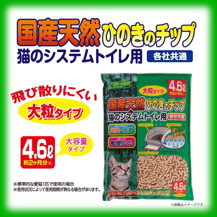 クリーンミュウ国産天然ひのきのチップ大粒 (4.6L×5セット)