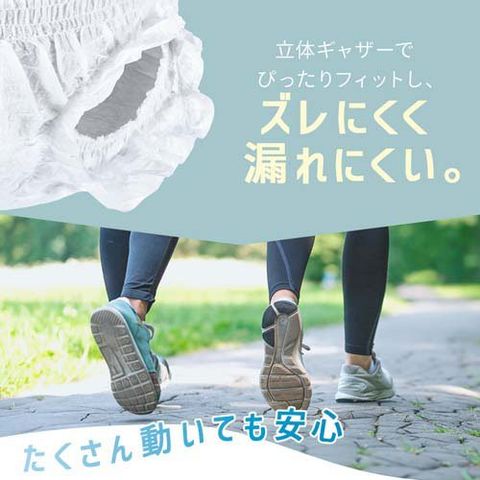 ●立体ギャザーでぴったりフィットし、ズレにくく漏れにくい。動いても安心!