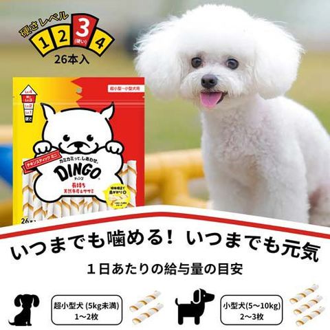 ・1日あたりの給与量の目安:超小型犬(5kg未満)1~2本、小型犬(5~10kg)2~3本。