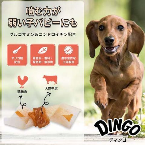 ●やわらか牛皮ガム&ササミ、噛む力が弱い子、生後4カ月からのパピーにも。