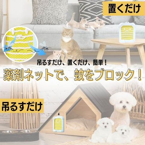 ●ネットから放出される薬剤が、ペットを蚊から守ります。
