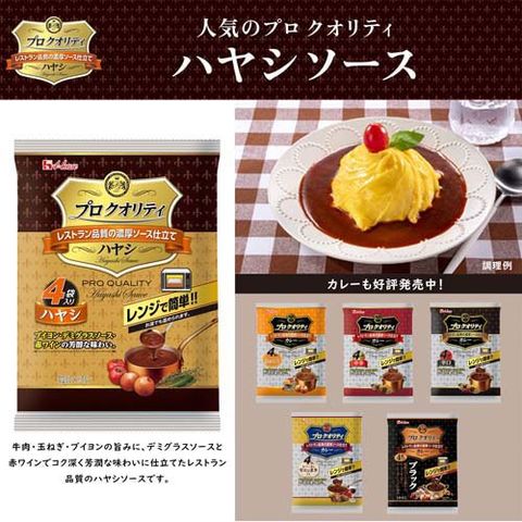●牛肉・玉ねぎ・ブイヨンの旨みに、デミグラスソースと赤ワインでコク深く芳潤な味わいに仕立てたレストラン品質のハヤシソースです。