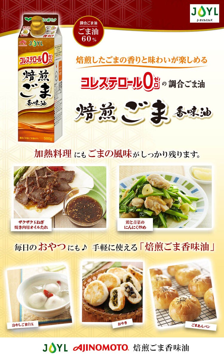 ●ごま油にキャノーラ油をブレンドした コレステロール0の油です。