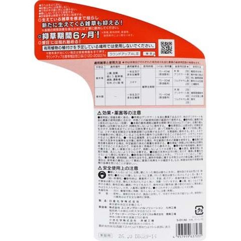 ●そのまま使えるラウンドアップの速効・持続タイプ!一般家庭用の、シャワータイプの除草剤です。生えてる雑草にかければ、翌日には枯れ始めてやがて根まで枯らす!さらに、出てくる雑草をブロックする成分配合で当社従来品よりプラス約2~3ヵ月長く抑草させます。