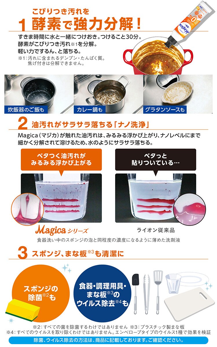 ●ライオンのナノ洗浄メカニズムで、油汚れがサラサラ落とせます。