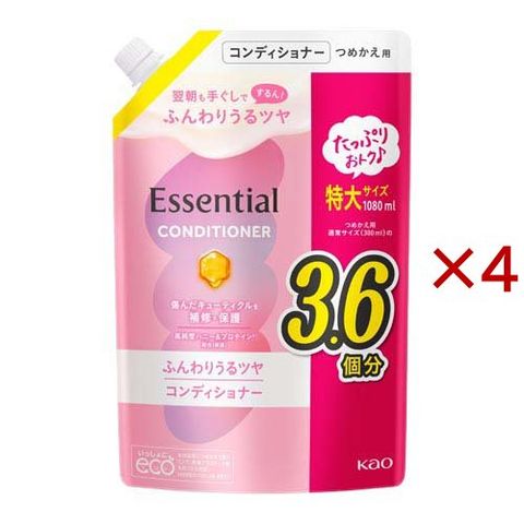 エッセンシャル ふんわりうるツヤ コンディショナー つめかえ用 (1080ml×4セット)