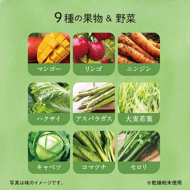 | イヌリン(オランダ製造)、エリスリトール、アップルパウダー(デキストリン、りんご)、マンゴーパウダー(マンゴー、デキストリン)、米胚芽大豆発酵エキス・植物エキス混合粉末、デキストリン、野菜ミックス粉末、ビフィズス菌(殺菌)、乳酸菌(殺菌)/増粘剤(増粘多糖類、加工デンプン)、酸味料、微粒二酸化ケイ素、香料、甘味料(ラカンカ抽出物)、着色料(クチナシ)、クエン酸、(一部にりんご・大豆を含む) |